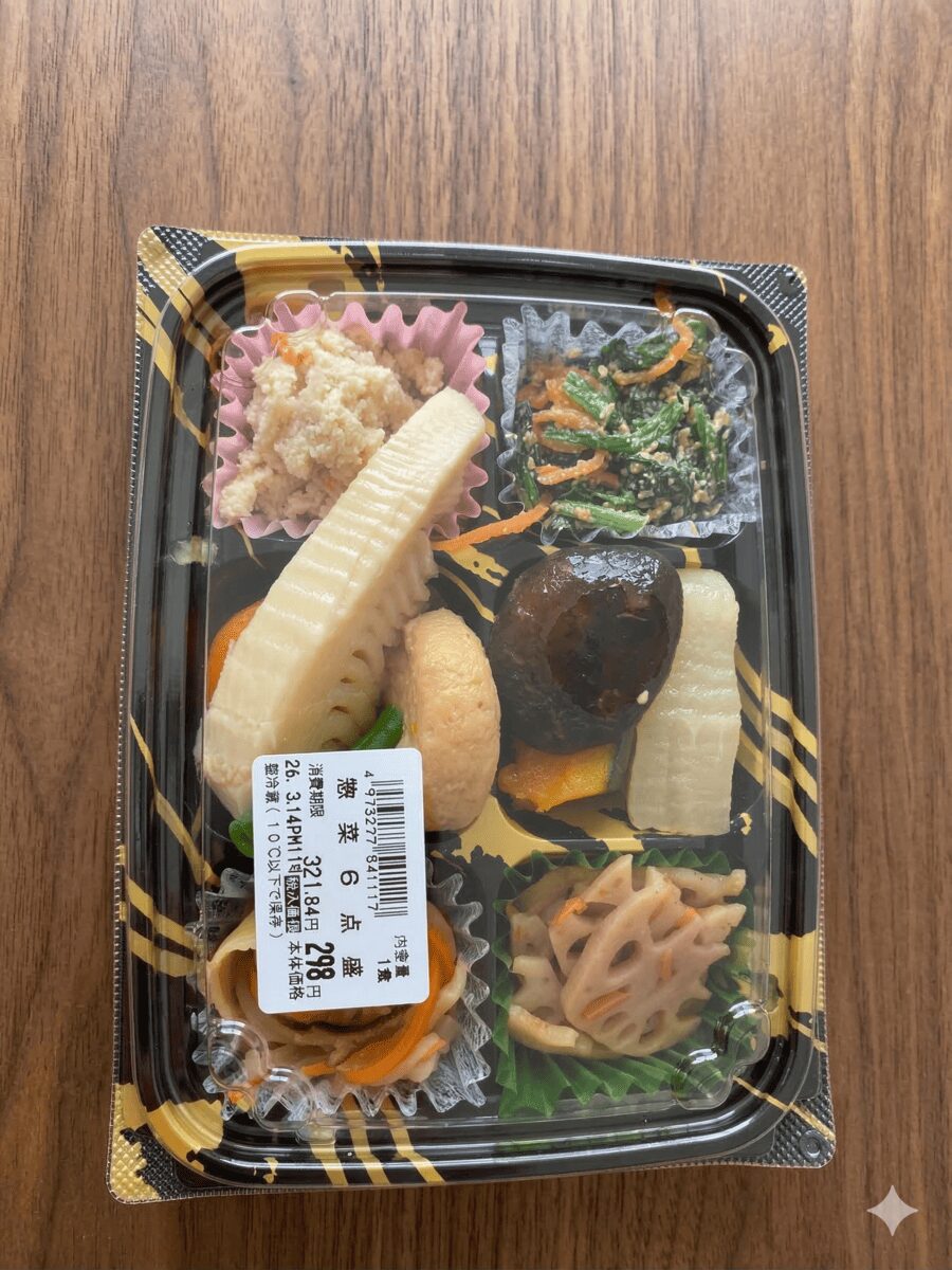 最近マックスバリュ南延岡店で見つけて気に入っている6点盛惣菜。若い時だったら自分では絶対に買わない食材ばかりが入った惣菜ですが...。歳をとったということでしょうか。