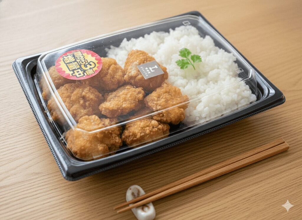 唐揚げが3個増量され、計8個入っているメガボリューム弁当。