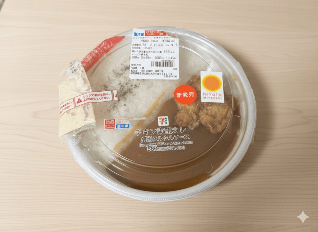 さらに翌日、今回の記念商品の中でも最も値段が高いチキン南蛮カレーを買ってきました。前回と同じくセブンイレブン延岡浜町店へ行きましたが、最後の一個を購入することができました。私以外にも買う人がいるみたいで嬉しく思いました。コラボ企画に飛びつきたくなる性分なのでしょう。