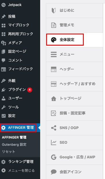 1)AFFINGER 管理を選択