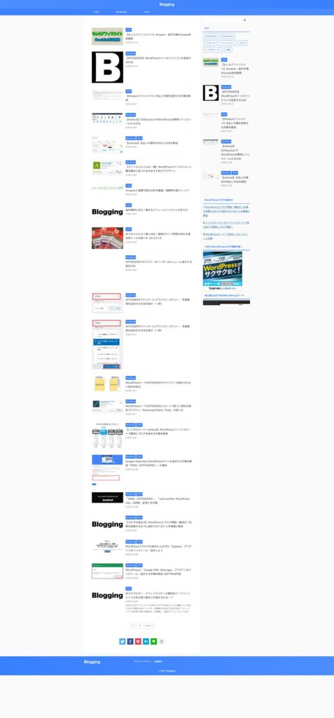 あくまでも当サイトで移行する過程をまとめていますので、独自にテーマの編集をしている場合や、AFFINGERの設定によって外観は異なります。