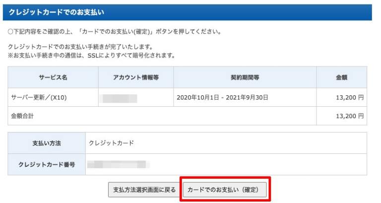 これでエックスサーバーの料金支払い方法の変更が完了です。