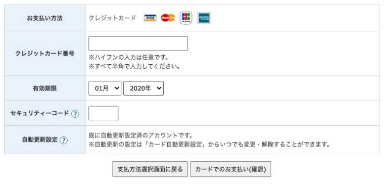 入力した後は「カードでのお支払い(確認)」を選択します。