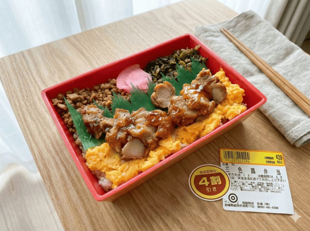 このページには広告が含まれています。 英語学習1万時間の壁を突破する「デジタル英単語帳」 HOME > ブログ > HIヒロセ南延岡店の弁当がうまい。三色鶏弁当はリピートしてしまう 2026年2月9日 HIヒロセ南延岡店の中には惣菜弁当が売っており、他のスーパーにはない品揃えで気に入っています。 夕方早くには割引が始まるため、夜の時間帯には人気の惣菜はほぼほぼ売り切れています。 その中でも個人的に好きな惣菜が「三色鶏弁当」です。 ふわトロの卵と唐揚げ、鶏そぼろ、高菜の組み合わせが良くバランスの取れた弁当です。 1週間に1回は食べてるので味の変化や米の硬さの変化にも気づけるようになりました。 この画像はAIを使って編集しました。 オリジナル画像はこちら↓ Twitter Share Pocket Hatena LINE URLコピー -ブログ
