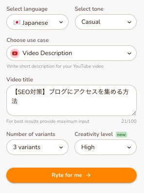 今回は、動画説明文に記載する文章を考えるのが面倒だと感じる方向けに、自動で説明文を考えてくれるAIアシスタントツール「Rytr」を紹介します。